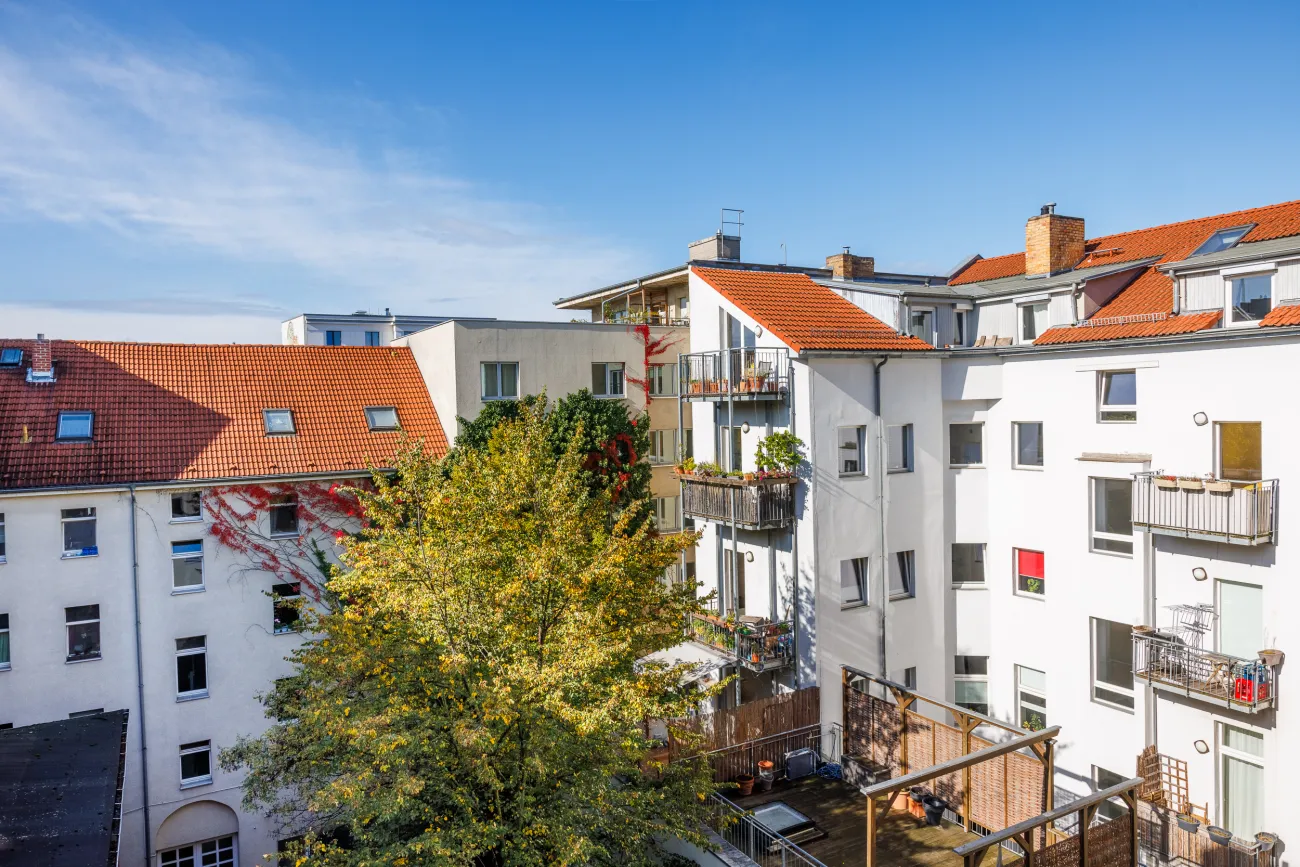 Durch die perfekte Süd-West-Ausrichtung und der Lage der Immobilie im 4.OG des Hauses wird diese zu fast jeder Tages- und Jahreszeit optimal mit Tageslicht ausgeleuchtet. Das Gemeinschaftseigentum ist typisch für einen in den 90er Jahren sanierten Berliner Altbau. Im Souterrain des Vorderhauses befindet sich derzeit ein kleines, spanisches Lädchen mit landestypischen Köstlichkeiten. Ringsum der Immobilie pulsiert das aufregende Leben der Weltmetropole. Ihre neue Eigentumswohnung hingegen versprüht Idylle und Geborgenheit. Egal, ob Sie diese zur Selbstnutzung oder als Anlageimmobilie erwerben. Sie erwerben jedenfalls eine Immobilie mit Wertsteigerungsaussichten.