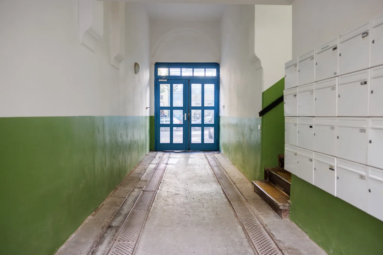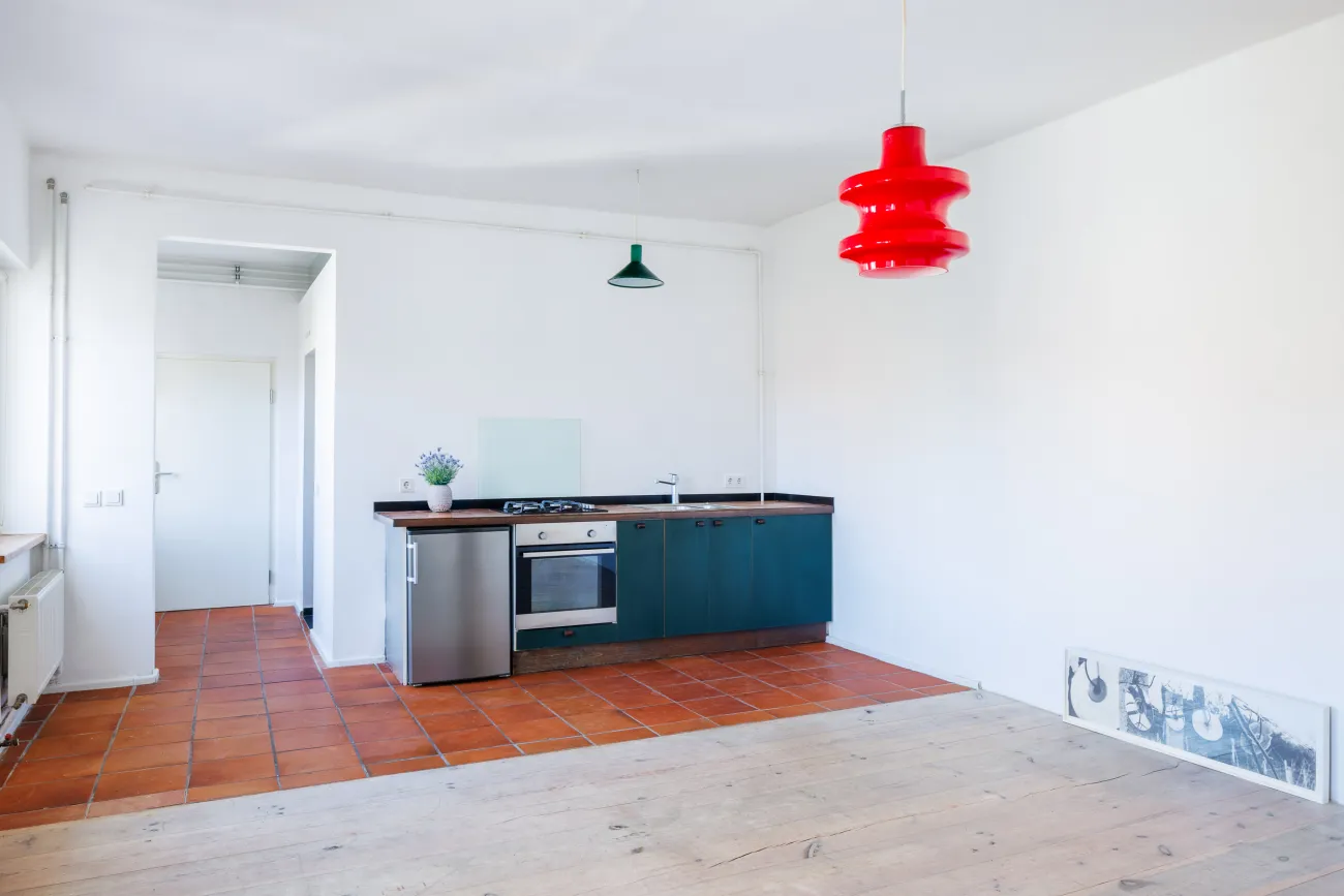 Das aus der Jahrhundertwende stammende Altbauhaus wurde Mitte der 90er Jahre saniert und beherbergt im 4. OG des Seitenflügels diese bezaubernde 2-Zimmer-Eigentumswohnung mit knapp 60 Quadratmeter. Der intelligente Zuschnitt der Immobilie vermittelt ein angenehmes Gefühl von Weite. Die hintereinander angelegten und durch zwei Stufen voneinander getrennten Zimmer eignen sich hervorragend für zwei Personen und sind ansprechend mit weiß geölten Landhausdielen ausgelegt. Das innenliegende Badezimmer verfügt über eine bodentiefe Dusche, einen Waschmaschinenanschluss und ist elegant dunkel gefliest. Die im Wohnzimmer offen integrierte Küchenzeile kann problemlos erweitert werden und grenzt sich mittels Terrakottafliesen vom Wohnbereich ab.
