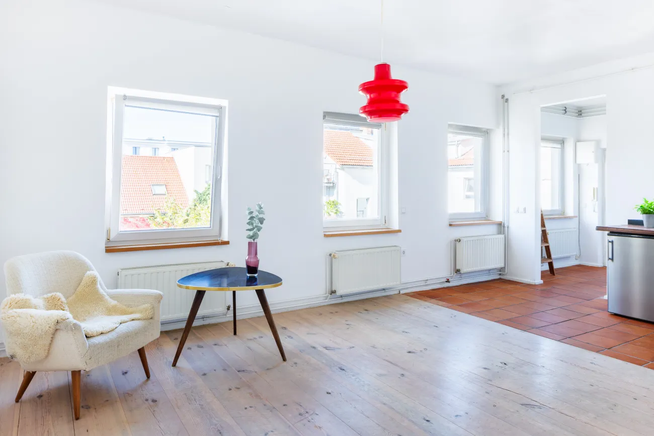 Wohnzimmer Eigentumswohnung Berlin Mitte Anklamer Straße Schwarz Immobilien