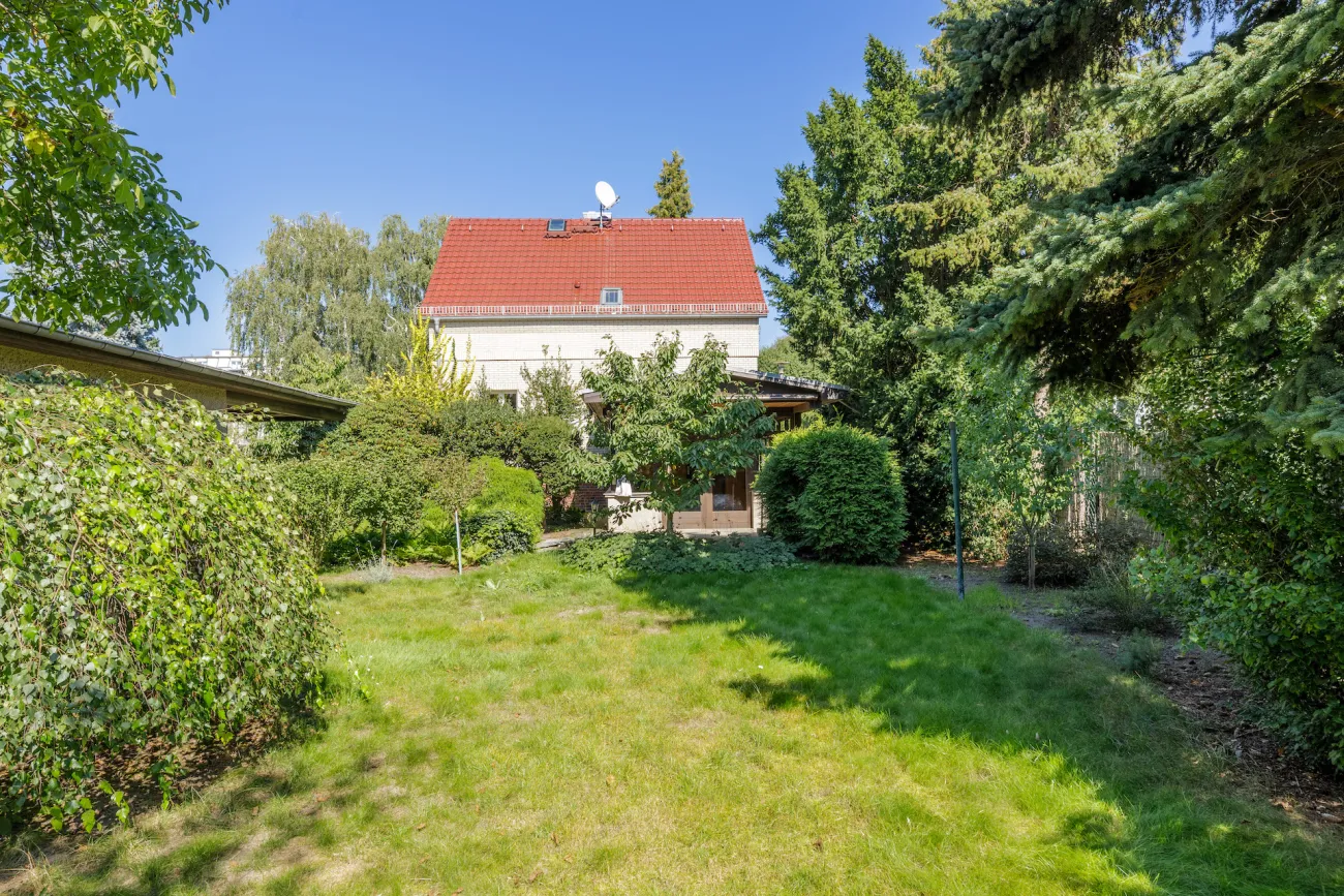 Auf einem wunderbar zugeschnittenen, etwa 830 Quadratmeter großen Grundstück mit Süd-West-Ausrichtung befindet sich dieses entzückende Einfamilienhaus aus dem Jahre 1930, welches bis 2022 fortlaufend saniert und modernisiert wurde. Das Haus wurde um eine etwa 30 Quadratmeter große Veranda aus Holz und Glas, eine massive Doppelgarage mit Carport sowie zwei Schuppen ergänzt. Das Anschließen eines Kamins ist problemlos möglich. Diese Immobilie lässt einfach keine Wünsche offen und passt sich garantiert Ihren Bedürfnissen unterschiedlichster Lebensphasen an.