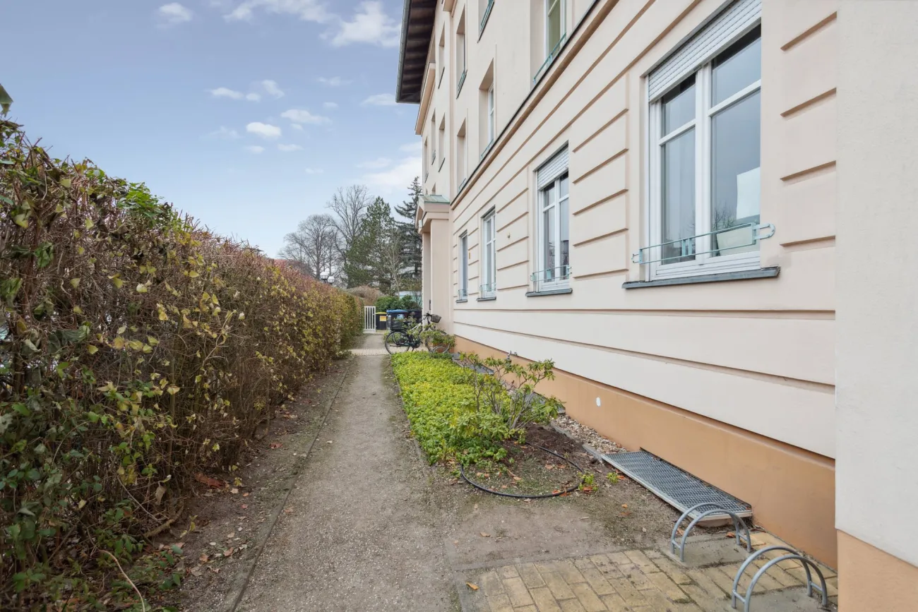 Diese  ausgesprochen helle und idyllische 2-Zimmer-Eigentumswohnung mit Loggia, Gemeinschaftsgarten und Stellplatz lässt keine Wünsche offen – hier werden Sie sich wohlfühlen.
