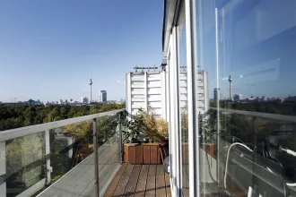Raum für Individualisten - das faszinierende Penthouse am Volkspark Friedrichshain erstreckt sich auf zirka 180 Quadratmeter in der 5. Etage eines 1887 errichteten Altbauhauses und wurde im Rahmen der Kernsanierung des Hauses im Jahre 2000 ausgebaut und 2009 modernisiert. Die Immobilie ist bis ins Detail ästhetisch formvollendetund hochwertig ausgestattet. Mit dem Fahrstuhl gelangen Sie bequem in Ihr Penthouse und betreten sogleich das Herzstück der Eigentumswohnung – den lichtdurchfluteten, großzügigen Wohn-Ess-Bereich mit einer maßangefertigten stilvollen Einbauküche, einem Kamin und einer nach Süd-Westen ausgerichteten Terrasse mit weitem Blick über den Volkspark sowie auf den Fernsehturm. Leben Sie ruhig mittendrin!