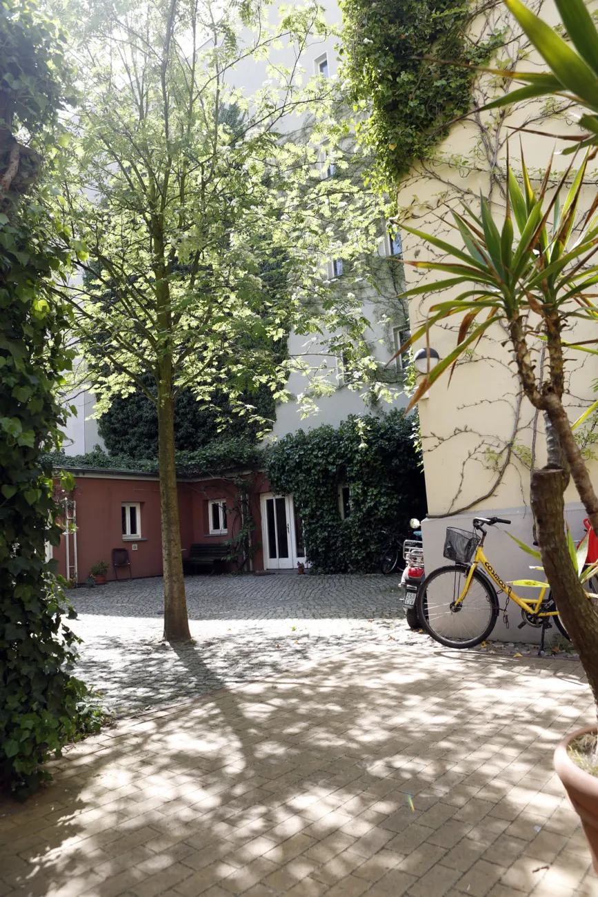 Gibt es das noch – eine Immobilie mitten im Prenzlauer Berg, das Kleinod, nach dem alle suchen? Diese Wohnung bietet es. Sie leben mitten im urbanen Umfeld des Kollwitzplatzes mit den vielen Restaurants, kleinen Läden und dem beliebten Kollwitzmarkt jeden Samstag direkt vor Ihrer Tür. Und doch haben Sie idyllische Ruhe im 4. Stock des Seitenflügels mit Blick in den Himmel und auf die Bäume. Unten empfängt sie ein begrünter Hofgarten mit Spielwiese, Becken mit Fischen und Seerosen, Spielgerät und Sandkasten und afrikanischen Steinskulpturen auf dem grünen Rasen.