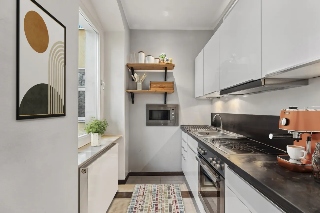 Die spektakuläre Lage dieser Immobilie zwischen Helmholzplatz und Kollwitzkiez wird vollendet durch den intelligenten Zuschnitt sowie die hochwertige Ausstattung. Die 32 Quadratmeter Wohnfläche verteilen sich hervorragend auf den beeindruckend großzügigen, sonnenhellen Wohn- und Schlafbereich mit Zugang zur offenen Küche mit hochwertigen Einbauten, das stilvoll und zeitlos ausgestattete Wannenbad mit Waschmaschinenanschluss und indirektem Tageslicht sowie den einladenden Eingangsbereich dieser Eigentumswohnung. Diese Immobilie eignet sich Bestens für ein bis zwei Personen.
