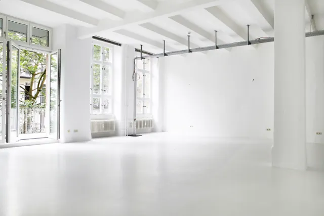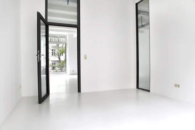 Derzeit existieren je Einheit ein Großraumbüro/Gemeinschaftsraum, zwei Besprechungszimmer, eine Teeküche sowie zwei separate Toiletten. Die größere Einheit (rechts, ca. 187qm) verfügt zusätzlich über ein Duschbad mit WC & Bidet sowie einen Balkon. Selbstverständlich können Sie die Räumlichkeiten Ihren beruflichen Bedürfnissen nach Absprache mit den Eigentümern anpassen oder aber so nutzen, wie sie jetzt sind. Die Lofts sind lichtdurchflutet und bieten so den optimalen Raum für Ihr Gewerbe. Ob als Ausstellungsfläche oder Großraumbüro genutzt –verwirklichenSie sich mit Ihrer Firma und spielen Sie mit der Architektur und deren Möglichkeitenzur Individualisierung in einer der attraktivsten und gefragtesten Lagen von ganz Berlin. Die authentischen Lofts im Bötzowkiezunweit des beliebten Friedrichshainer Volksparks werden frisch renoviert übergeben und versprühen den typischen Loft-Charakter –große Fenster, Betonfußboden, Glastüren mit Stahlrahmen, verputzte Wände, Kabeltrassen an den Decken.