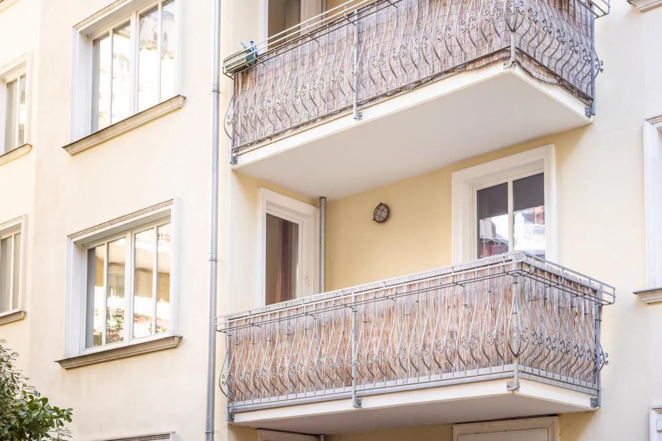 Der großzügige Wohnbereich bildet das Herzstück der Wohnung und bietet viel Platz zum Leben, Kochen und Entspannen. Von hier aus gelangen Sie auf den Balkon, der zum ruhigen und grün angelegten Innenhof ausgerichtet ist. Zwischen gepflegten Grünflächen entsteht hier ein angenehmer Rückzugsort, der besonders in den warmen Monaten zu ruhigen Stunden im Freien einlädt.